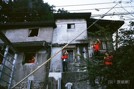當天寶藏巖的工作人員跑到尖蚪借窗口,說要做體操,就覺得很有意思,到店外頭一看,每個能站的高處,已經站了要一起做體操的人們,就等音樂齊聲下令,很有趣~