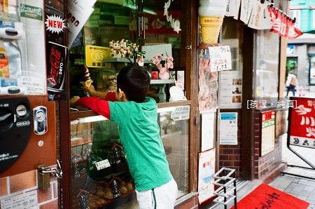 瞧見小男孩向雜貨舖的店主人要了綜合口味的霜淇淋,